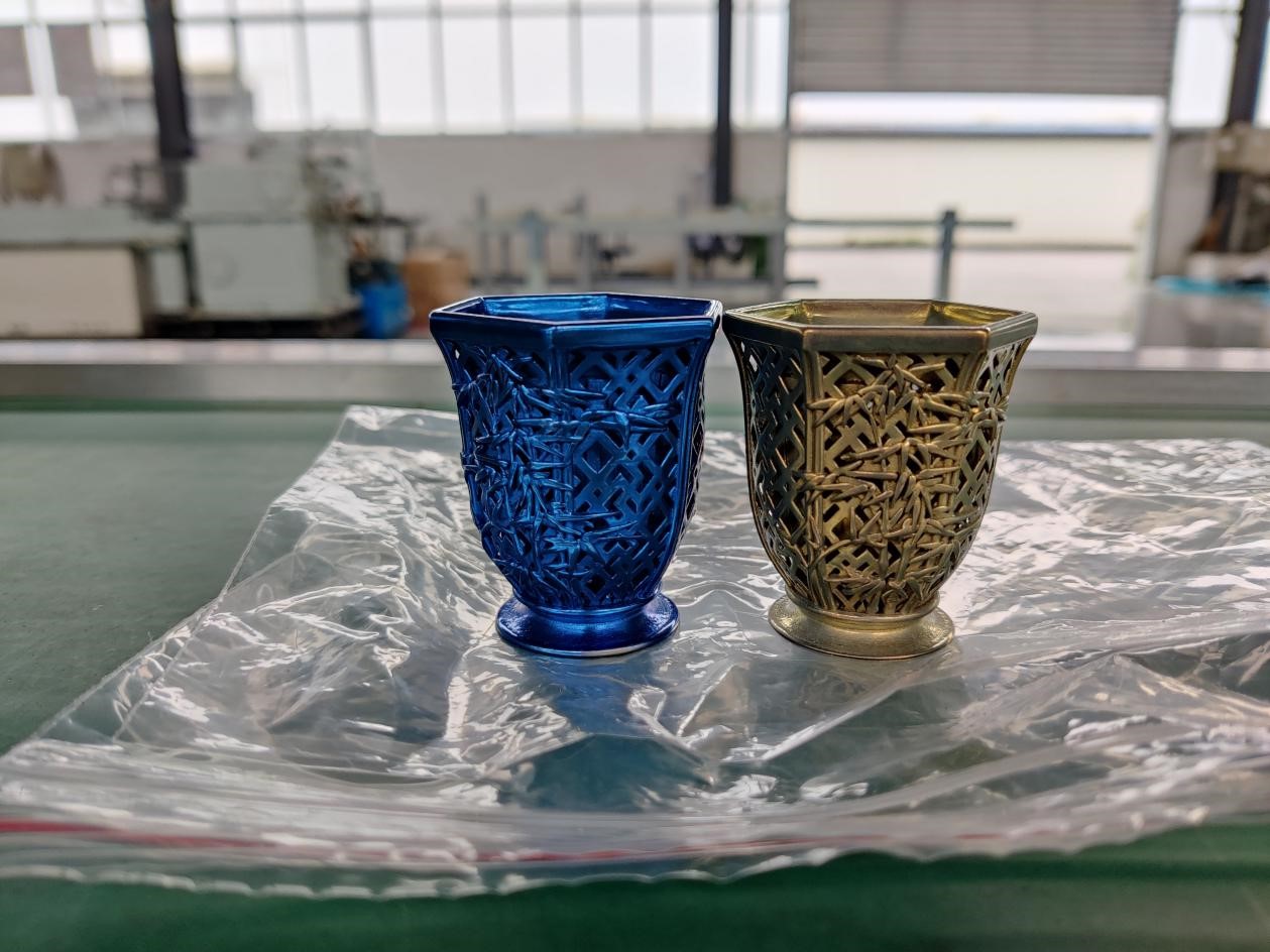 產(chǎn)品特征:以純鈦為材料進行鏤空夾層設(shè)計,在突顯美觀的同時體現(xiàn)了增材制造的技術(shù)優(yōu)勢,健康、隔熱、保溫、輕盈是它的特點,再賦予鈦金屬特有的表面著色工藝使它更具魅力。